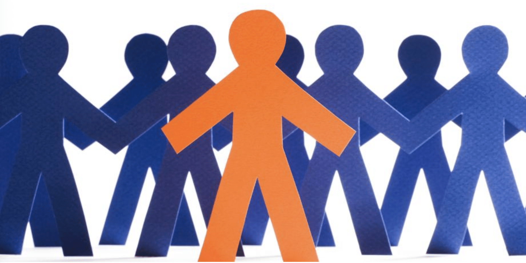 Graphic of multiple stick figures in blue with one standing out in orange